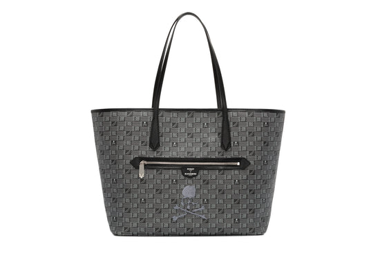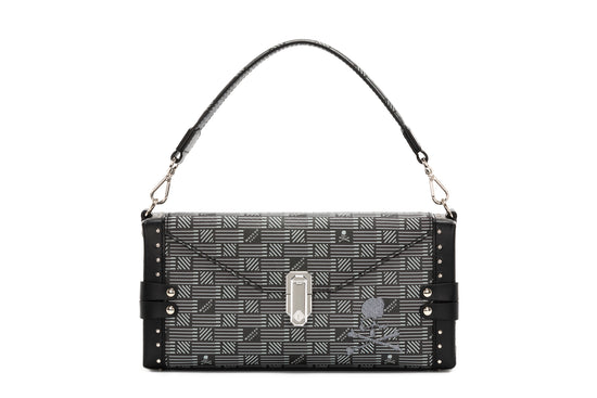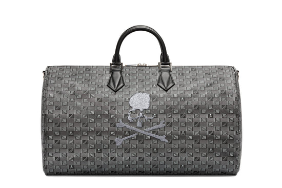 A defining element of the collection is the exclusive pattern, meticulously crafted to incorporate Mastermind World's signature skull motif. Each piece is finished with luxurious black calf leather details, adding a refined touch to the collaboration.