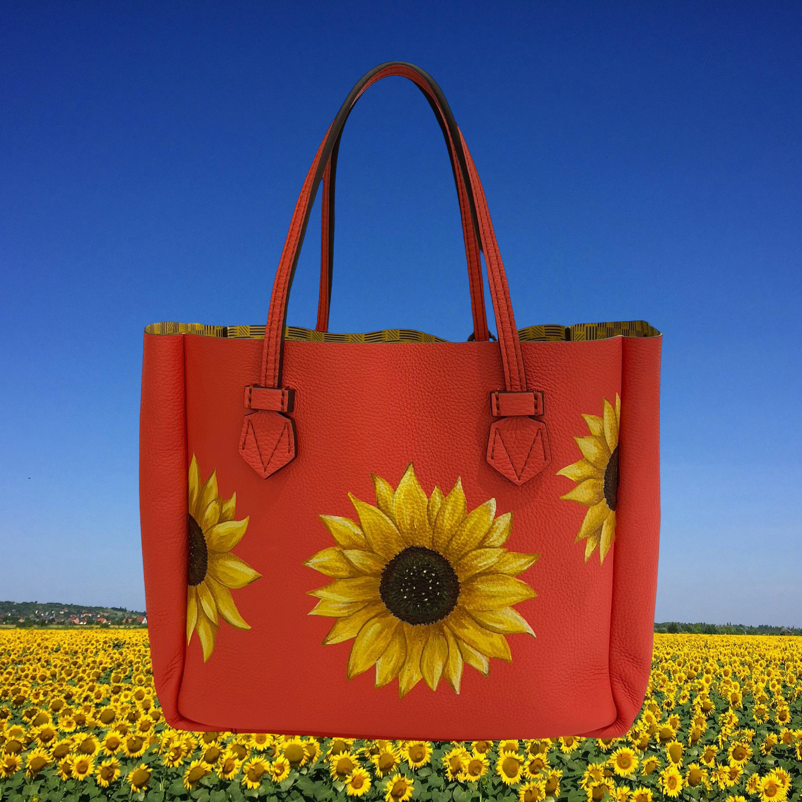 In its lined version, it becomes reversible to adapt to desires and moods while the retractable handles a make it easy to fold and pack the bag into a suitcase.